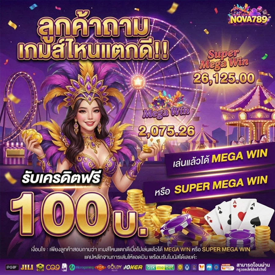 รวมเกมสล็อตออนไลน์มาแรงจาก NOVA789 อัตราจ่ายสูง เป็นแหล่งรวมความสนุกและโอกาสทำกำไรสำหรับผู้เล่นที่ชื่นชอบเกมสล็อตคุณภาพในปีนี้ NOVA789 คัดสรรเกมสล็อตยอดนิยมจากค่ายดังมาไว้ให้เลือกเล่นอย่างครบครัน ไม่ว่าจะเป็นสล็อตใหม่ล่าสุด สล็อตแตกง่าย หรือเกมที่มีฟีเจอร์โบนัสหลากหลาย ตอบโจทย์ทั้งผู้เล่นมือใหม่และผู้เล่นที่มีประสบการณ์